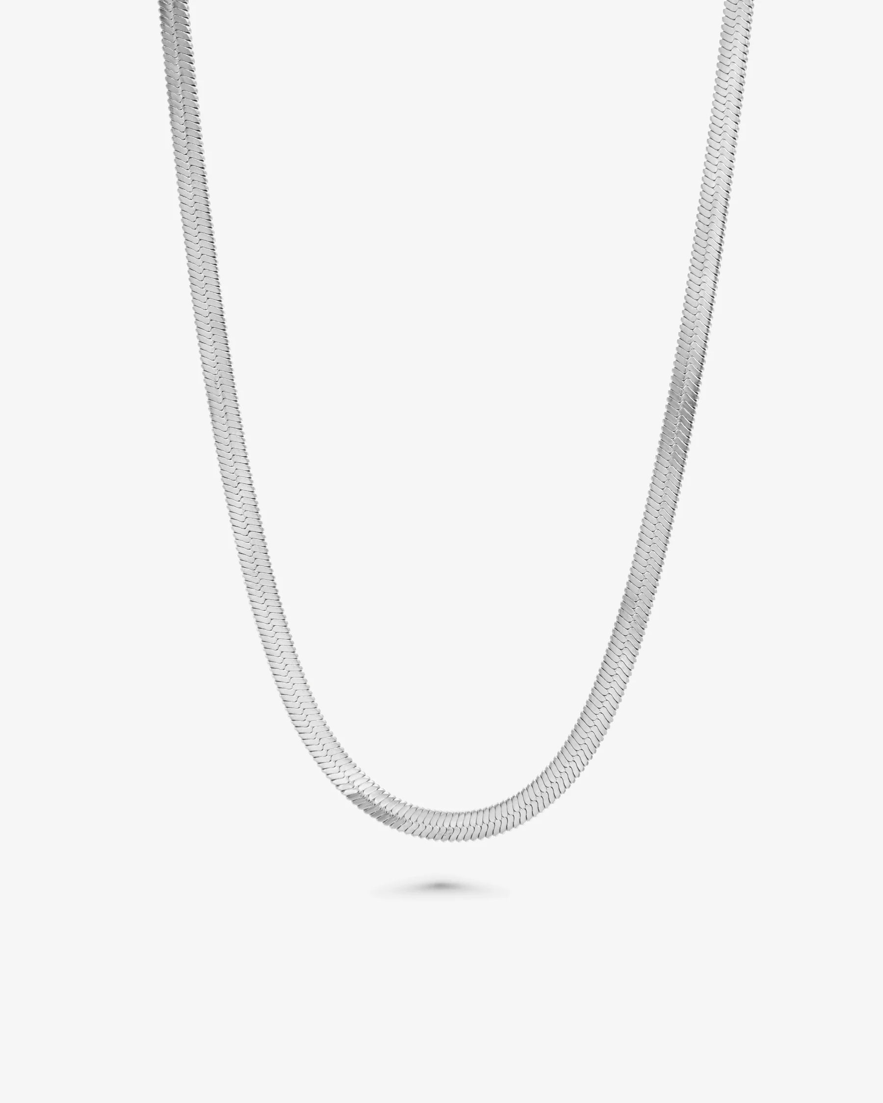Bone Chain Silver fra WHO IS SHE er et klassisk halskjede med en skinnende overflate i sølvbelagt premium rustfritt stål. Kjede kan dusjes og bades med uten at det falmer, det tåler trening og en aktiv livsstil. Smykke er laget av resirkulert rustfritt stål og belagt med et tykt lag av ekte 925 sølv.