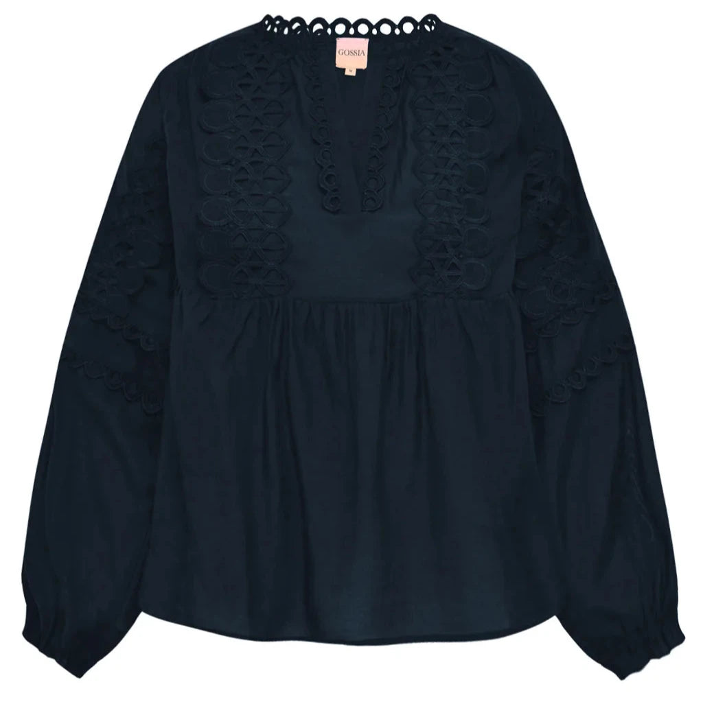 KaiaGO Lace Blouse fra Gossia er en fantastisk flott topp i myk og deilig kvalitet, med de vakreste påsydde blonder. Blusen har en litt oversized passform med lange vide ermer som har elastiske håndledd. Perfekt til alle antrekk!