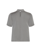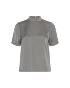Minara Maluca 2/4 Top fra MSCH Copenhagen er en tidløs og klassisk bluse i glatt stoff. Blusen har korte ermer og høy hals. Lukkes med knapper i nakken. Fargen er mer grønn i virkeligheten enn den fremstår på bildene.