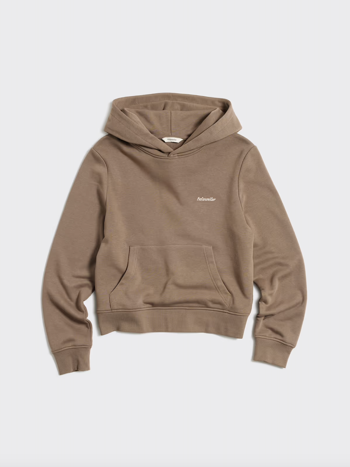 Regulare Light Hoodie fra Holzweiler er en lett og tynn hettegenser i en nydelig jordtone med regulare fit og ribbestrikkede kanter. Genseren har en liten logo på brystet og et dekorativt emblem på ermet.