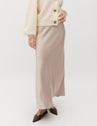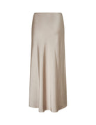 Maila-M, Maulia, Skirt Light Sand er et langt satengskjørt i lys beige med små delikate stener.