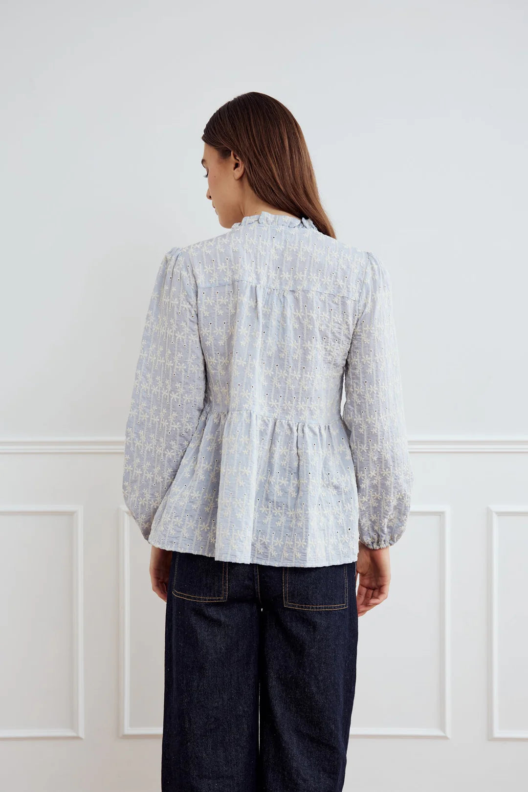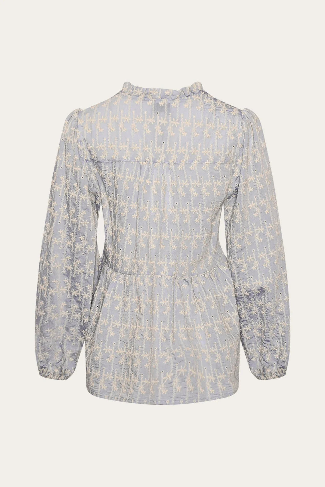 Matti Blouse fra Noella er en brodert bluse med klassisk passform, fine volangdetaljer i halsen og langs livet. Den er laget i en lett og behagelig viskoseblanding, og passer perfekt til både hverdags og penere anledninger. Normal i størrelsen.