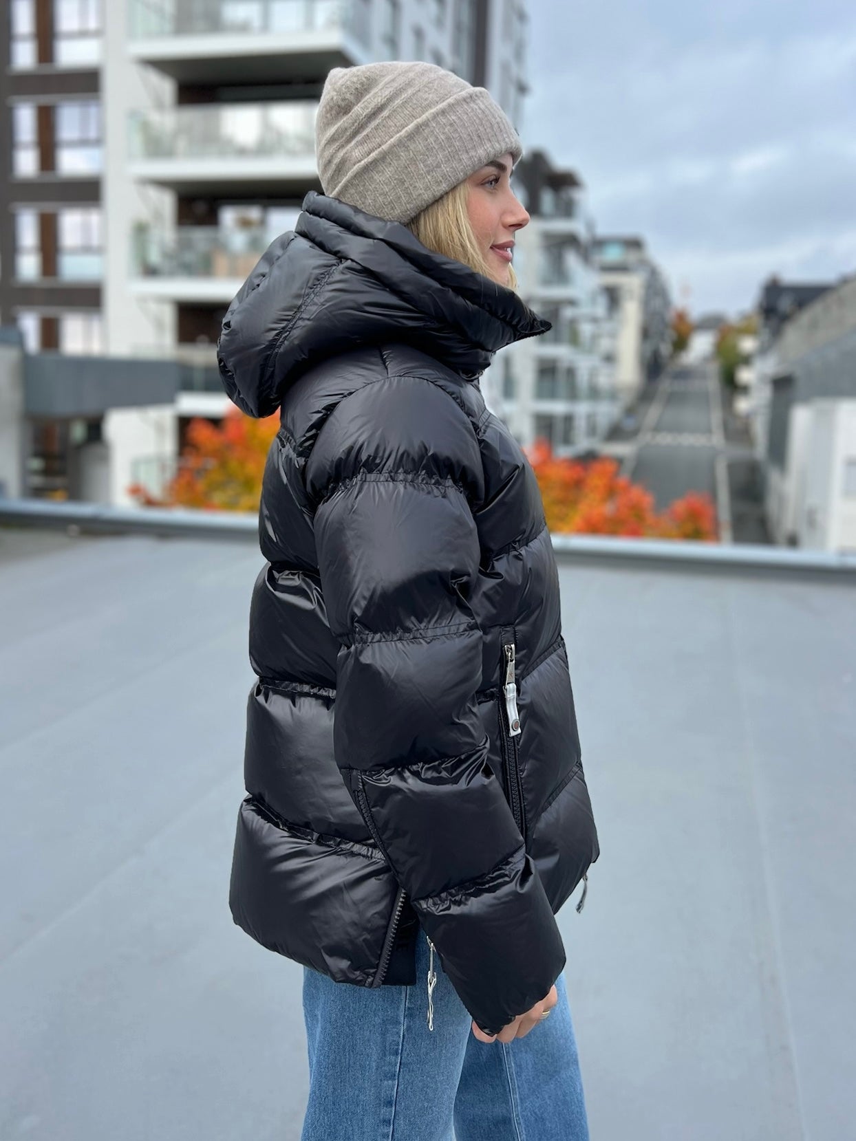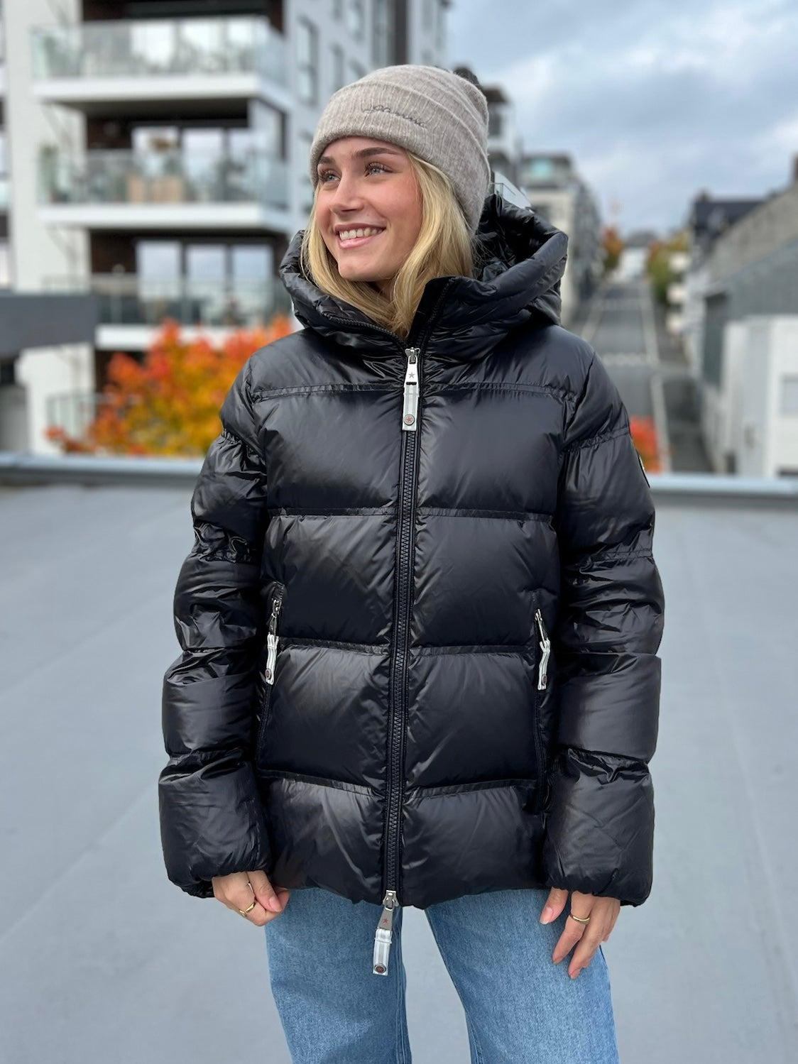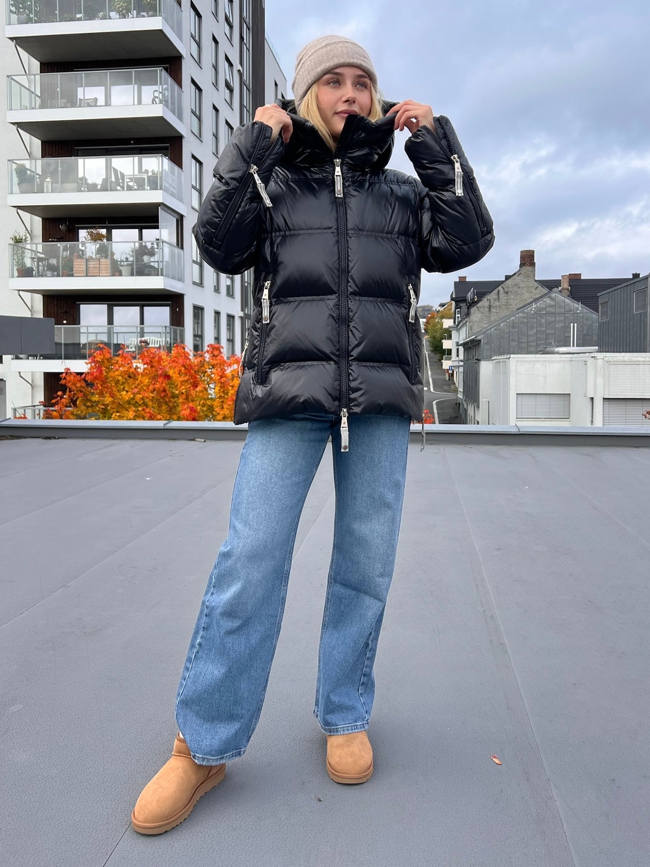 Erika Lux fra C.A.Y.A. (Come As You Are) er en kort dunjakke. Erika er normal i størrelsen. Dunjakken er lett i materiale og har splitt i sidene med glidelås for justerbar passform. I front har jakken glidelås og knepping og stikklommer i sidene med glidelås og praktiske remmer på innsiden. Den har kule detaljer og holder deg varm hele vinteren.