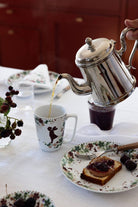 Alveblomst krus fra Wik & Walsøe har et delikat blomsterdesign i en naturlig fargepalett som passer like godt til hverdag som til hyggelige anledninger. Kruset er laget av rent, slitesterkt porselen som tåler både oppvaskmaskin og stekeovn. Serien er en naturlig fornyelse av den ikoniske Alv-kolleksjonen, og kan kombineres med Alv-produkter eller stå vakkert alene. Det myke uttrykket og de botaniske detaljene bringer en følelse av ro og nærhet til naturen.