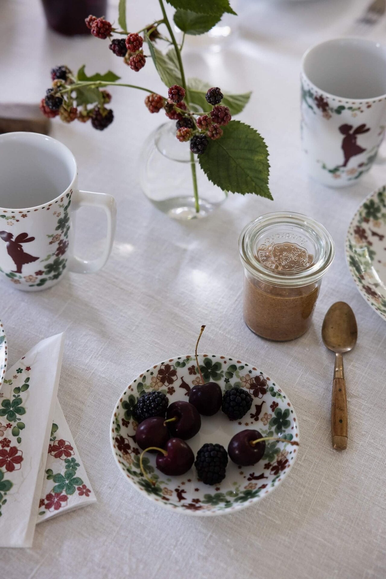 Alveblomst bolle 13 cm har et vakkert blomsterdesign og en naturlig fargepalett som passer til hverdagens små og store øyeblikk. Den er laget av rent, slitesterkt porselen som tåler både oppvaskmaskin og stekeovn, og er derfor perfekt til daglig bruk. Alveblomst er en fornyelse av signaturkolleksjonen Alv, og passer like fint sammen med Alv-serien som alene. Det delikate blomsterdesignet henter inspirasjon fra naturen og skaper en rolig og harmonisk atmosfære.