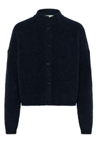AlphaGZ Short Cardigan er en myk strikkejakke med knapper, høy ribbestrikket hals og droppede skuldre fra Gestuz. Laget i fluffy strikk med avslappet passform og lange ermer for komfort og varme.