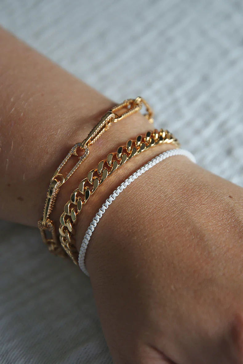 Minimalistisk armbånd med klassisk lenge, detaljert med matt overmateriale.