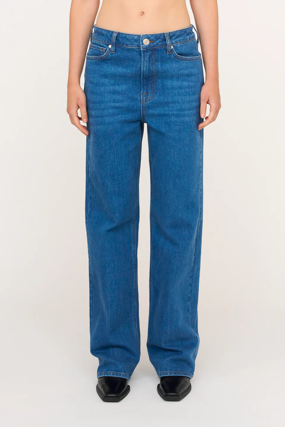 Brown Straight fra Tomorrow Denim er en klassisk jeans med rette ben fra hofte til nedre ben. Den hvite jeansen har høy midje og løs passform rundt hofter og lår.